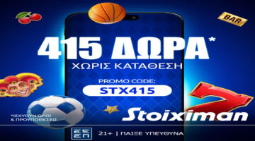 Προσφορά γνωριμίας* με 415 δώρα* χωρίς κατάθεση στη Stoiximan!